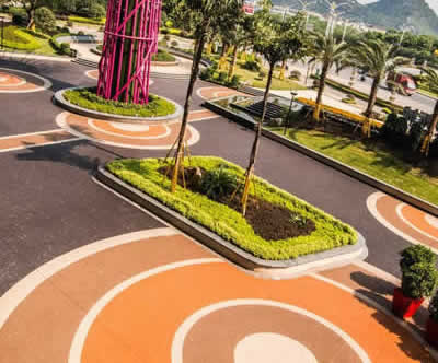 透水混凝土系统拥有系列色彩配方,配合设计的创意,针对不同环境和个性要求的装饰风格进行铺设施工。这是传统铺装和一般透水砖不能实现的特殊铺装材料。