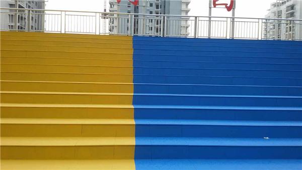 ③ 用丙烯酸面漆根据客户的要求进行看台地面的颜色搭配,滚涂两道面漆。
