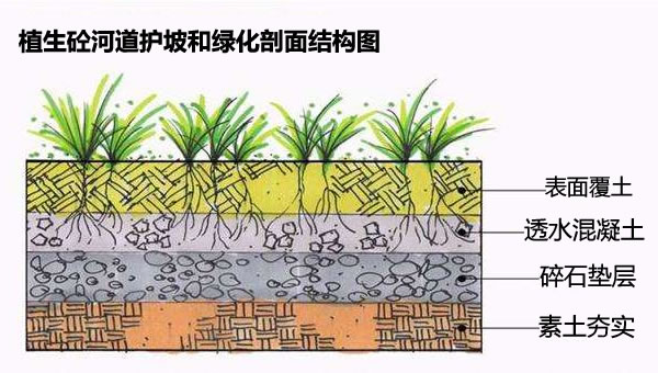 植生生态混凝土护坡优势: